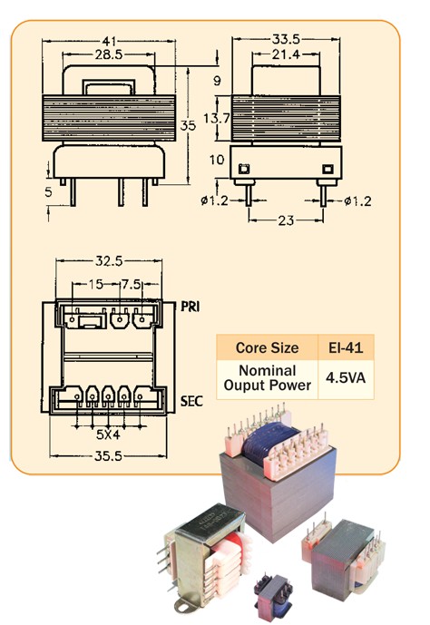 HELMS-MAN PCB-MOUNTED PIN TYPE TRANSFOMRERS EI 41 (4.5 VA)