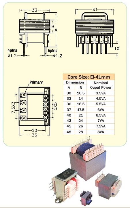 HELMS-MAN PCB-MOUNTED PIN TYPE TRANSFOMRERS EI 41mm