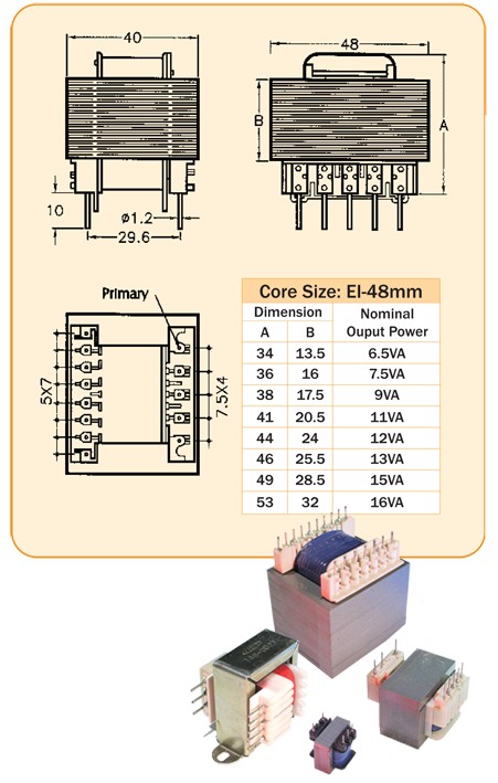 產品資料 > HELMS-MAN PCB-MOUNTED PIN TYPE TRANSFOMRERS EI 48mm