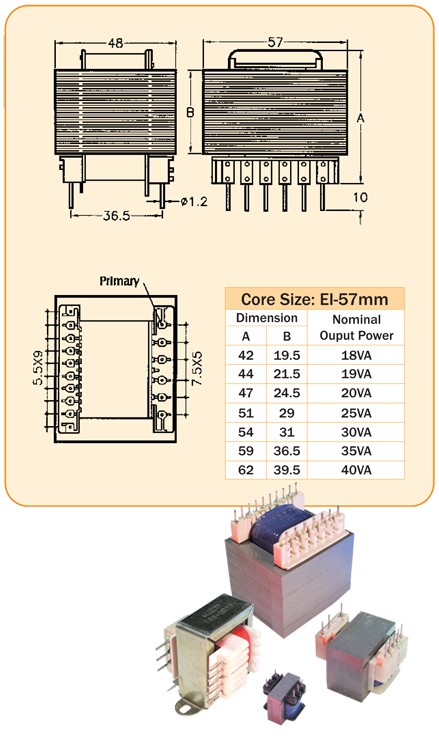 HELMS-MAN PCB-MOUNTED PIN TYPE TRANSFOMRERS EI 57mm