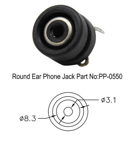 產品資料 > Round Ear Phone Jack Part No. PP-0550
